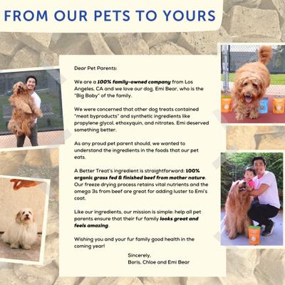 Beef up treat time for your best friend with A Better Treat Freeze-Dried Beef Dog & Cat Treat. Made with grass-fed beef liver freeze-dried to retain nutrients and flavor, these single-ingredient treats have a rich aroma and satisfying taste your BFF will flip for! Grass-fed beef liver can be up to five times richer in omega-3 fatty acids than regular beef, to help your pet shed less and shine more. It also contains natural amino acids like healthy taurine to help your pet thrive. These non-greasy treats are grain-free, gluten-free, GMO-free, additive-free and great for training, rewarding your pet or topping off food. They’re limited ingredient, raw diet-friendly and a sure way to please your furry friend!
