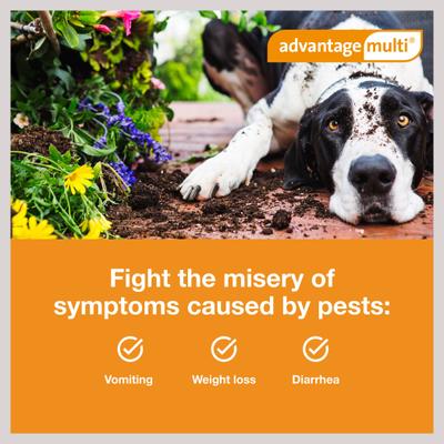Advantage Multi for Dogs is indicated for the prevention of heartworm disease caused by Dirofilaria Immitis and the treatment of Dirofilaria Immitis circulating microfilariae in heartworm-positive dogs. Advantage Multi for Dogs kills adult fleas and is indicated for the treatment of flea infestations (Ctenocephalides felis). Advantage Multi for Dogs is indicated for the treatment and control of sarcoptic mange caused by Sarcoptes Scabiei Varcanis.
