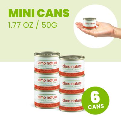 Complete and balance cat food made with the finest fresh ingredients. With added vitamins and minerals. Feed your cat 5 to 6 cans per day of Almo Nature HQS Complete for every 8 lb (4 kg) of bodyweight. Adjust as necessary for less active or more active cats.