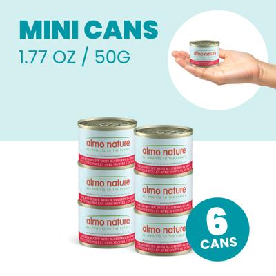 Complete and balance cat food made with the finest fresh ingredients. With added vitamins and minerals. Feed your cat 5 to 6 cans per day of Almo Nature HQS Complete for every 8 lb (4 kg) of bodyweight. Adjust as necessary for less active or more active cats.