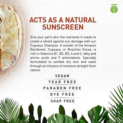 Improve your best friend’s sunny outlook with the natural sun protection of Amazonia Cupuacu Pet Shampoo. Made with cupuacu superfruit from the Amazon Rainforest, this nourishing shampoo creates a natural shield against sun damage with a rich blend of vitamins, fatty acids and antioxidants in the cupuacu oil. The all-natural formula gently cleanses and moisturizes to promote a bright and shiny coat that’ll positively glow in the sunlight! Great for beach buddies, sunny-day-loungers and light-coated buddies who need extra sun protection.