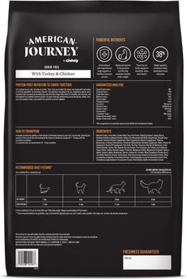 American Journey Indoor Recipe with Turkey and Chicken Grain-Free Dry Cat Food is crafted to fuel your cat’s day and satisfy their primal appetite for protein. When it comes to your cat’s food, there’s no need to overcomplicate what nature made simple—start with delicious turkey, and add in nutrient-dense fruits and vegetables, plus vitamins and minerals. It features Taurine to help support healthy eyes and heart, plus there are no unnecessary extras like wheat, corn, soy or poultry by-product meals. Serve up a bowl of nutrition that’s made for more moments together, wherever your journey takes you.