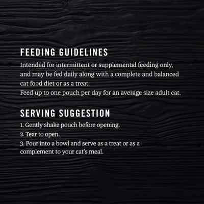 Intended for intermittent or supplemental feeding only, and should be fed as a treat. Feed up to one pouch per day for an average size adult cat.
