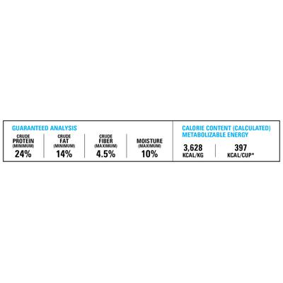 3,628 kcal/kg, 397 kcal/cup