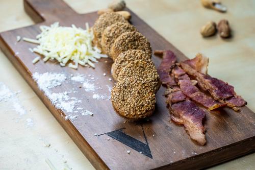 Unbleached Whole Wheat Flour, Bacon, Peanut Butter, Cheddar Cheese, Sesame Seeds, Butter, Egg, Vanilla, And Vitamin E (Preservative).