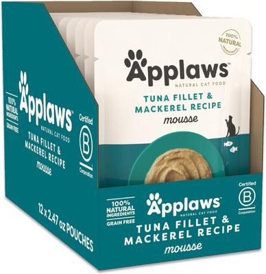 Applaws Tuna Fillet Mousse Wet Cat Food makes a delightful treat for your feline friend. Crafted with simplicity and quality, this delectable mousse offers the pure goodness your kitty craves. Made with 100% natural, limited ingredients, the recipe is free from artificial preservatives, colors, and flavors. This cat food complement can be paired with any complete dry cat food as a tasty addition to your cat’s daily feeding regimen. Whether served on its own as a snack or as a delectable topper for dry food, it provides a nourishing and satisfying experience for your furry friend.