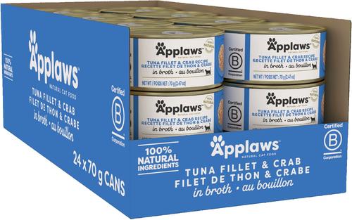 Tickle your kitty’s taste buds with Applaws Tuna Fillet with Crab in Broth Wet Cat Food. This meal topper makes a delightful addition to your feline friend’s complete and balanced diet. Crafted with simplicity and quality in mind, the natural recipe offers pure goodness without artificial additives. Real tuna is the number one ingredient. Then, a savory broth, wholesome rice, and crab are added to keep your kitty coming back for more. Whether served over your cat’s favorite kibble or alone as a snack, it provides a nourishing and satisfying experience for your beloved friend. Explore the diverse range of natural recipes from Applaws and make every meal an adventure.