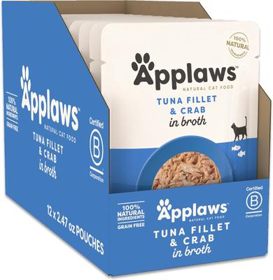 Comida húmeda para gatos con variedad de sabores de pescado en caldo, ingredientes limitados, bolsa de 2,47 oz, caja de 12