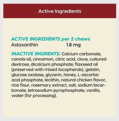 For dogs 12 weeks and older. For best results, we recommend a full astaxanthin dosage of 2 chewables per day, just like brushing your teeth. For even longer lasting effectiveness, try combining this with Brushless Plaque-Zapper.