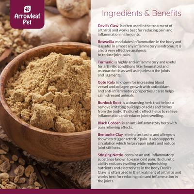 Active Ingredients: Devil's Claw Root, Boswellia, Turmeric, Burdock Root, Gotu Kola, Black Cohosh, Stinging Nettle, Bentonite Clay.