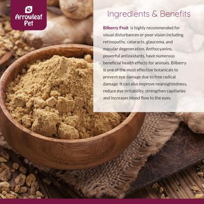 - Bilberry is packed with antioxidants to help protect your furbaby against oxidative stress and promote eye function.