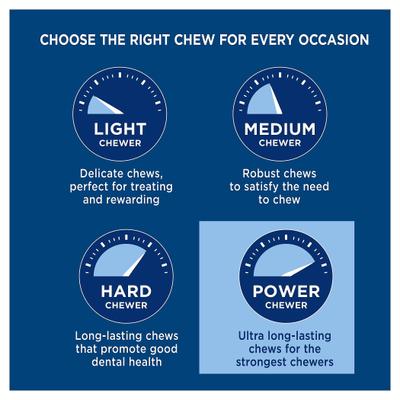 Averaging 5-6 inches, these chewing treats also provide support for dental health by removing plaque and tartar.