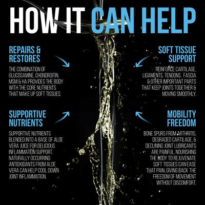 - Powerful formula with glucosamine, chondroitin, MSM, and HA to support soft tissues of the joints.