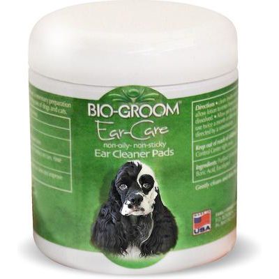 Las almohadillas limpiadoras de oídos medicadas Bio-Groom Ear Care, no grasas ni pegajosas, facilitan y agilizan la limpieza de los oídos de tu mascota. Estas almohadillas de algodón prehumedecidas no son grasosas ni pegajosas. Contienen una preparación veterinaria desarrollada para la limpieza y el secado rutinarios de oídos, para que tu mejor amigo se sienta bien. Esta solución seca y limpia suavemente el canal auditivo, a la vez que elimina el exceso de cerumen. Sus propiedades antibacterianas y antifúngicas también abordan algunas de las causas comunes de la picazón e incomodidad en los oídos. Estas almohadillas prehumedecidas son prácticas y no pican, lo que facilita la limpieza de los oídos tanto para ti como para tu mascota.