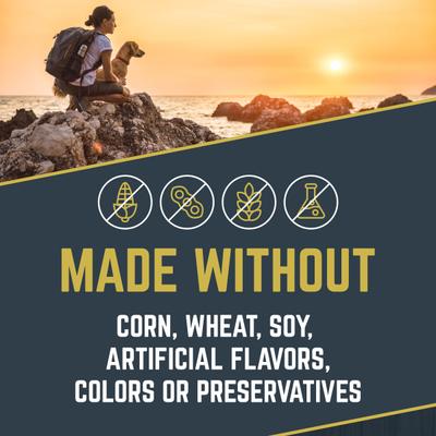 - Made without corn, wheat, or soy and contains no artificial flavors, colors, or preservatives.