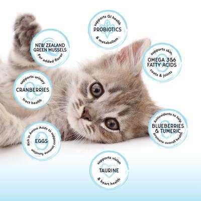 - It’s made with green mussels to promote mobility for your playful new kitty.