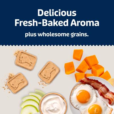 - This variety pack includes bacon, egg and cheese, apple and yogurt, and pumpkin and cinnamon varieties for tasty flavors from real ingredients your dog will love.