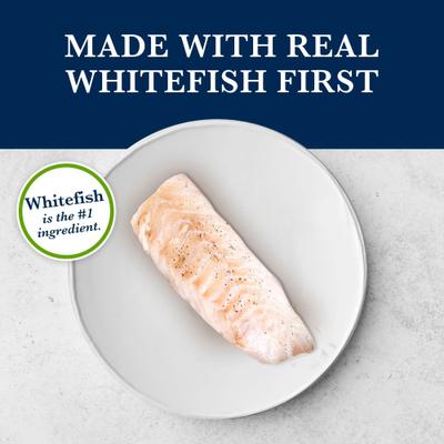 - This Blue Buffalo dry dog food is made with real, high-quality whitefish as the first ingredient.