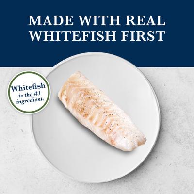 - This Blue Buffalo wet dog food is made with real, high-quality whitefish as the first ingredient.