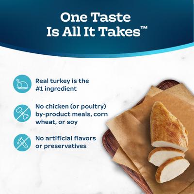 Blue Buffalo Tastefuls Savory Singles Natural Wet Cat Food in Gravy starts with tasty cuts of real turkey as the first ingredient in savory gravy with wholesome brown rice and sweet potatoes. This cat food from Blue Buffalo gives you a portion that’s purr-fect for one meal, so no more storing open cat food in the fridge. And the easy-to-serve twin-pack cups make feeding a breeze, so there are no utensils are necessary. Just snap it, peel it, and serve it to your cat.
