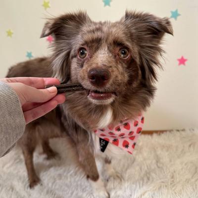 - Comes in a bristled shape to help break down plaque on your pup’s teeth.