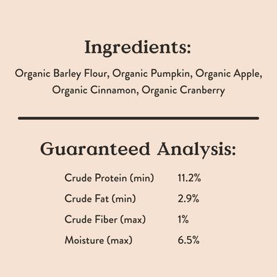 Barley Flour, Pumpkin, Cranberries, Apples, and Cinnamon