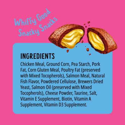 Las golosinas crujientes para gatos Bonkers Cat Pillows con sabor a salmón Supreme tienen una capa exterior crujiente y un centro irresistiblemente pegajoso, lo que brinda un sabor y una textura que incluso los ¡A los gatos más exigentes les encantará Bonkers! Creadas en colaboración con nutricionistas animales, las recetas cuidadosamente formuladas de Bonkers están hechas con proteínas de alta calidad y no contienen trigo, soya, colorantes ni sabores artificiales, así que puedes sentirte bien al consentir a tu gato. Ya sea que los uses como recompensas de entrenamiento, como juguete dispensador de golosinas o como un bocadillo porque sí, ¡estos crujientes bocados seguro que volverán loco a tu gatito!