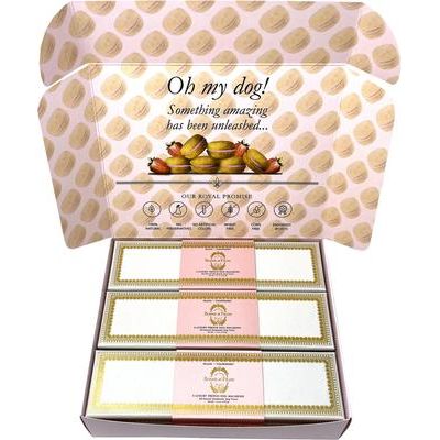 Haz que tu perro diga "Sí, por favor" a la hora de la merienda con las golosinas para perros Bonne et Filou Macarons de fresa. Elaboradas con ingredientes naturales como harina de avena, miel, aceite de coco y fresas, estas galletas, aptas para perros, están diseñadas para durar muchas masticaciones y tienen la ventaja adicional de un delicioso relleno de yogur. Además, ¡no encontrarás maíz, trigo ni ningún otro ingrediente o conservante artificial! ¡Lleva la repostería francesa a tu mejor amigo peludo con esta caja de regalo llena de deliciosos dulces!