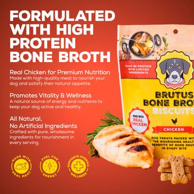 Bone Broth Chicken Biscuits Natural Limited Ingredient Crunchy Dog Treats, 8-oz bag