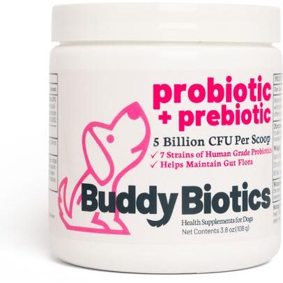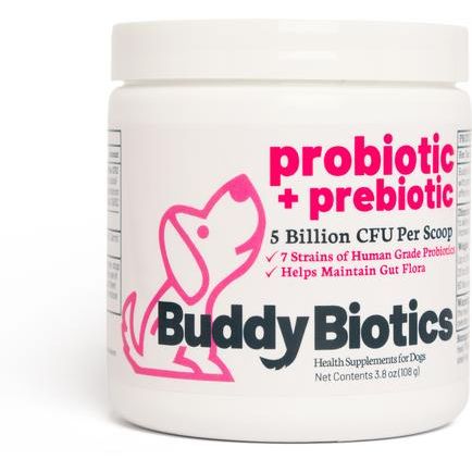 Regale a su mascota un microbioma intestinal más fuerte, además de una mejor salud y vitalidad con el suplemento en polvo probiótico + prebiótico BuddyBiotics para perros. Elaborado con siete cepas probióticas de grado humano y fibra prebiótica, este suplemento para espolvorear está especialmente diseñado para restaurar y mantener el equilibrio intestinal, proporcionando resiliencia digestiva, fortaleza inmunitaria y mayor vitalidad. También ayuda a reducir las molestias digestivas, los gases y las heces inconsistentes. Ya sea un cachorro en crecimiento, un adulto o un perro mayor, este suplemento es ideal para el uso diario e incluso puede usarse para perros con intolerancias alimentarias. Simplemente espolvoréelo sobre sus comidas en casa o úselo durante viajes, mudanzas o situaciones estresantes como el alojamiento o las visitas al veterinario. Con el tiempo, notará una mejor absorción de nutrientes, una digestión más tranquila y un pelaje más sano.