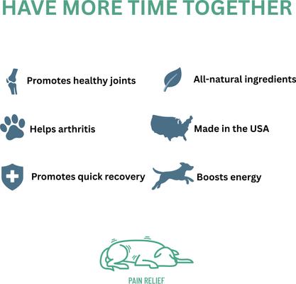 - Ingredients like organic turmeric, glucosamine and chondroitin support your dog’s hip and joint health.