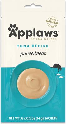 - Applaws Tuna Puree Lickable Cat Treats, 0.5-oz tube, 6 count—Explore your options and serve these treats whole, break into pieces, or sprinkle over food for added texture and flavor.