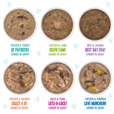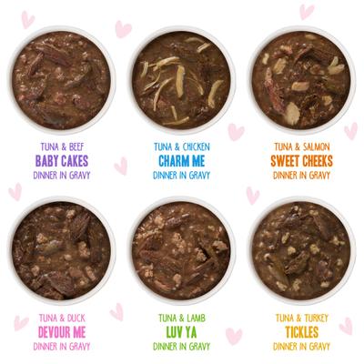 - Grain-free wet food variety pack with real meat including beef, salmon, tuna, chicken, turkey, lamb and more.
