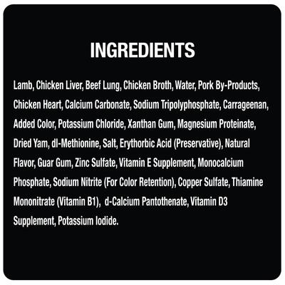- With lamb as the first ingredient, this wet food works as a complement to dry food or stands alone as a tasty meal.
