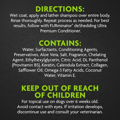 FURminator DeShedding Ultra Premium Shampoo for Dogs, 16-oz bottle—Keep your fur baby clean and shed free with FURminator deShedding Ultra Premium Shampoo! Made in the USA, this soothing shampoo is enriched with omega fatty acids, which help to moisturize the coat and prevent excess shedding. These powerhouse ingredients, coupled with conditioning agents, improve your pal’s overall skin and coat health whenever he hops into the bath. The shampoo is even infused with a deodorizer, so you don’t need to deal with wet dog smell after tub time! Formulated without parabens or chemical dyes, this shampoo is paw-fect for your de-shedding regimen.