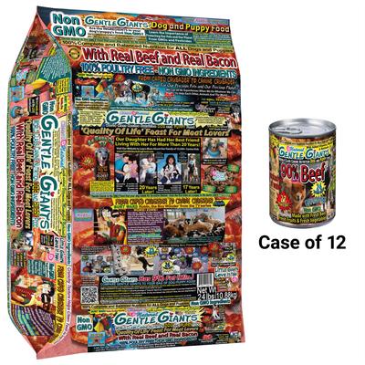 Bundle: Gentle Giants Non-GMO Dog & Puppy Beef Wet Food + Natural Non-GMO Dog & Puppy Beef & Bacon Dry Dog Food