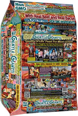 Gentle Giants Natural Non-GMO Dog & Puppy Beef & Bacon Dry Dog Food, bolsa de 24 lb: Gentle Giants con carne de res real y tocino real se elabora con ingredientes super premium sin OGM, como carne de res y tocino de granja real. También contiene otros ingredientes reales y reconocibles, como arroz integral, cebada perlada, avena, además de ocho frutas y verduras como calabaza, arándanos azules, arándanos rojos, manzanas, guisantes, batatas, zanahorias y espinacas. Y con mejillones verdes de Nueva Zelanda, naturalmente ricos en glucosamina y condroitina, esta croqueta también ayuda a reducir la inflamación, favorecer la salud articular e incluso fortalecer los huesos. Las recetas de Gentle Giants están repletas de vitaminas queladas, minerales, ácidos grasos omega-6, ácidos grasos omega-3, prebióticos y probióticos, lo que proporciona a tu cachorro la nutrición integral que se merece. Esta croqueta es apta para perros de todas las edades, desde cachorros hasta adultos mayores.