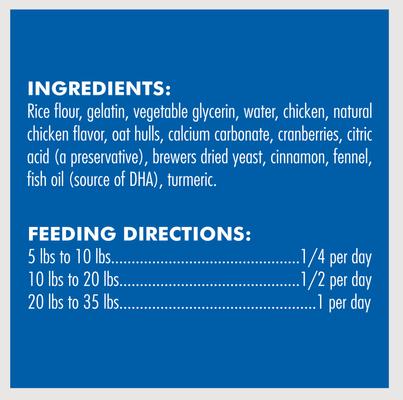 N-Bone Puppy Teething Ring Chicken Flavor Dog Treats, 6 count—Satisfy your furry young friend’s natural need to gnaw and soothe his sore gums with N-Bone Puppy Teething Ring Chicken Flavor Dog Treats. With a round shape that’s designed specifically for the chewing needs of puppies, added calcium to support healthy bones and teeth, and the delectably savory taste of chicken, you’ll both love these teething chews. And thanks to the pliable, digestible formula of N-Bone Puppy Teething Rings, you don’t have to worry about your young pooch damaging his immature teeth or eating something that he’s not supposed to.