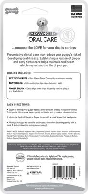 Set your puppy up for a lifetime of healthy teeth with Nylabone Advanced Oral Care Puppy Dental Kit + N-Bone Teething Ring Chicken Flavor Dog Treats! This dental kit for dogs helps pet parents establish a daily routine for proper pet dental care, which may extend the life of their pets. This triple-action dental kit is designed to clean teeth in one easy motion; designed for both larger and smaller mouths. Then satisfy your young furry friend’s natural need to gnaw with this teething ring. With a round shape that’s designed specifically for the chewing needs of puppies, added calcium to support healthy bones and teeth, and the delectably savory taste of chicken that your newest furry family member will find irresistible, you’ll both love these teething chews.