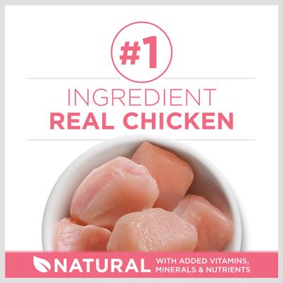 Nurture your kitten's well-being from nose to tail! Each purchase comes with Purina ONE Healthy Kitten Formula Dry Cat Food, 16-lb bag & Fancy Feast Tender Feast Variety Pack Canned Kitten Food, 3-oz, case of 24. Purina ONE Healthy Kitten Formula Dry Cat Food starts with real chicken as the #1 ingredient and is rounded out with grains and accents of real vegetables, including real carrots and peas. Each cup is packed with 46 grams of protein to support your kitten's growing muscles, including her healthy heart. Plus, the natural kitten food formula has added vitamins, minerals and nutrients to foster your little friend's development, including DHA, a nutrient found in mothers' milk that assists with brain and vision development. Omega-6 fatty acids in every serving promote her healthy skin and soft coat, and Purina ONE for kittens is highly digestible, so more nutrition goes to work inside your kitty. Best of all, kittens love the delectable poultry flavor and the enticing texture of the crunchy kitten kibble, which also helps reduce plaque buildup to keep her teeth clean. Fancy Feast Tender Feast Variety Pack Canned Kitten Food features poultry or fish as the #1 ingredient, along with real milk and other high-quality ingredients. Essential vitamins and minerals help support your kitten's health, and the smooth pate texture is easy for her to eat, giving her a delectable taste with every bite. This wholesome wet kitten food provides 100% complete and balanced nutrition, so you know she's getting the nutrition she needs to help her grow up strong and healthy. These delicious recipes are packaged in convenient pull-tab cans for easy serving. While she gets a gourmet dining experience, you get the comfort that comes from knowing your growing kitten is getting high-quality entrees backed by Purina's 95 years of innovation.
