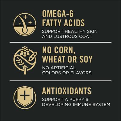 Purina Pro Plan Puppy Sensitive Skin & Stomach Salmon & Rice Dry Dog Food, 4-lb bag—Give your puppy the specialized nutrition he needs in his first year of life with Purina Pro Plan Sensitive Skin and Stomach Puppy Food with Probiotics, Salmon & Rice Formula. This wholesome kibble features salmon as the first ingredient and includes gentle on the tummy rice. The fortified formula has omega-6 fatty acid rich sunflower oil, vitamin A and fish-oil derived DHA to nourish your puppy’s healthy skin and coat, and encourage his brain and vision development. Antioxidants support your furbaby’s developing immune system, while calcium, phosphorus and other minerals help build strong bones and teeth. Natural prebiotic fiber nourishes specific intestinal bacteria and probiotics support your pal’s digestive and immune health. Contains no artificial colors or flavors.