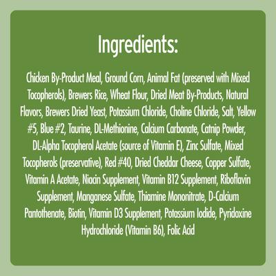 Temptations MixUps Catnip Fever Flavor Soft & Crunchy Cat Treats — Tempt your kitty with the scrumptious taste and enticing texture of Temptations Mixups Catnip Fever Cat Treats. These unique little pocket-shaped rewards have an irresistible crunchy outside and a soft and creamy inside with the purr-worthy flavor combination of chicken, catnip and cheese. These Temptations treats are 100% nutritionally complete and balanced for adult cats and are just under two calories per piece. Shake the bag or tub to capture your cat’s attention and watch her run towards you with pure excitement, ready for her next reward!