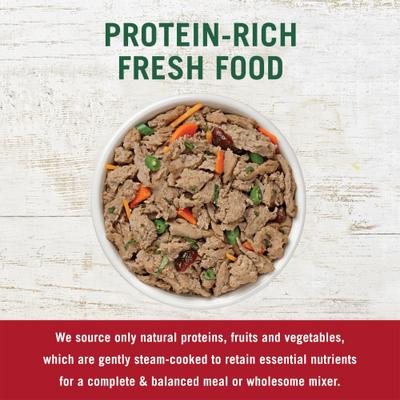 - Non-GMO, fresh dog food is gently cooked using natural ingredients.