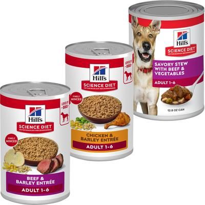 Paquete variado - Comida enlatada para perros Hill's Science Diet Chicken & Barley Entree, sabores: carne de res, cebada y carne de res y verduras