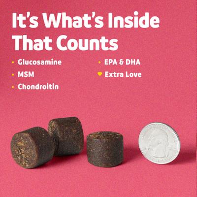 - Vibeful Mobility & Joint Health Beef Flavored Soft Chews Glucosamine Joint Supplement for Dogs, 14 count—Bring your pup all the moving and grooving vibes with these whisker-licking soft chews formulated to support hip and joint health and overall mobility.