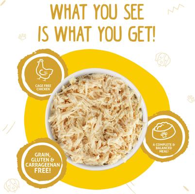 Weruva Paw Lickin' Chicken in Gravy Grain-Free Canned Dog Food, 14-oz, case of 12—Weruva is a line of luxurious natural and Grain-Free pet foods. Made in a human food facility, they gathered the best ingredients from around the world to make the best food for your best friend - for life. The factory operates at international human food processing standards, including that of the super-strict British Retail Consortium (BRC), and the pet food processing must pass BRC scrutiny.rnrnThe gravy is what you’d expect it to be…simply Dog-tastic for those doggies that love to lick! The aspic is similar to Jello in that it starts off as a powder that is mixed with water, but when cooked, it takes on a gel like substance. It is great for “protecting” the ingredients in that you are able to see and identify the ingredients that we use.rnrnGive me an order of chicken breast, hold the veggies, hold the grains. In fact, hold everything. And while you're at it, make it free of added antibiotics, free of added hormones and cage free . Lick those paws clean with boneless, skinless, white breast chicken in a sumptuous gravy… Yummy!