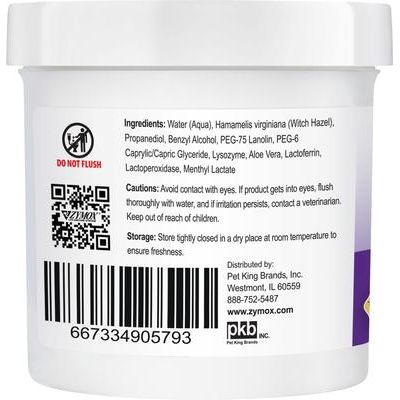 Toallitas enzimáticas avanzadas Zymox para orejas de perros y gatos: mantenga las orejas de su cachorro o gatito limpias y sin olor con las toallitas enzimáticas avanzadas ZYMOX para orejas de perros y gatos. Estas toallitas hipoalergénicas y no irritantes son perfectas para la limpieza diaria. Cada toallita tiene un dorso texturizado para un fácil agarre y está formulada con aloe vera para ayudar a aliviar el enrojecimiento y la incomodidad temporales, así como con lactato de mentilo para calmar la piel irritada. Además, no contienen fragancia, colorantes ni químicos ni detergentes agresivos que puedan irritar los oídos de tu mascota.