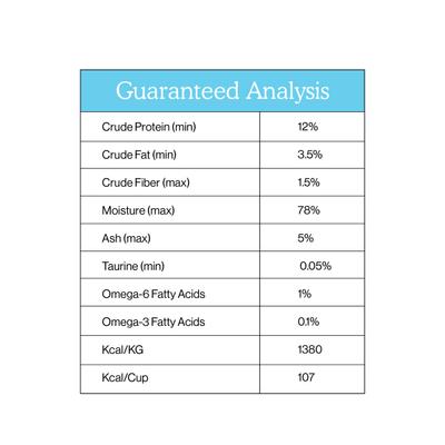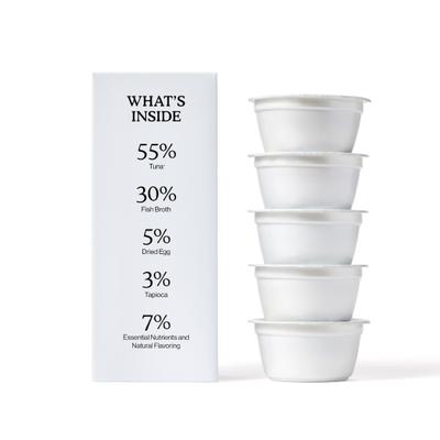 Tuna, Fish Broth, Dried Egg, Sunflower Oil, Tapioca, Tricalcium Phosphate, Natural Flavor, Salt, Dandelion, Fish Oil, Magnesium Sulfate, Potassium Chloride, Vitamin E Supplement, Taurine, Choline Chloride, Thiamine Mononitrate, Dried Celery, Niacin Supplement, Vitamin A Supplement, Zinc Oxide, Reduced Iron, Manganese Sulfate, Pyridoxine Hydrochloride, D-Calcium Pantothenate, Riboflavin Supplement, Copper Amino Acid Complex, Folic Acid, Vitamin B12 Supplement, Vitamin D3 Supplement, Biotin, Potassium Iodide.