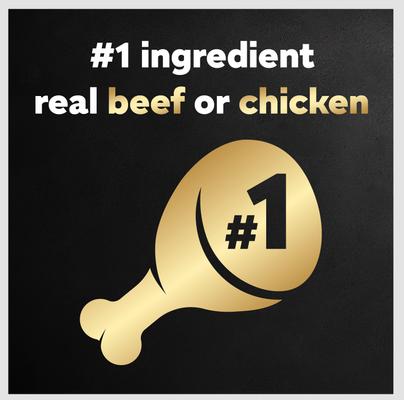 - Real chicken or beef is the first ingredient, plus real veggies.
