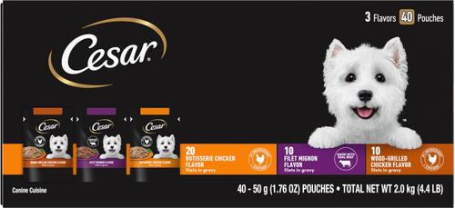 Variety Pack Filet Mignon, Rotisserie Chicken, & Wood-Grilled Chicken Flavor Filets in Gravy Wet Dog Food, 1.76-oz mini-pouch, case of 40
